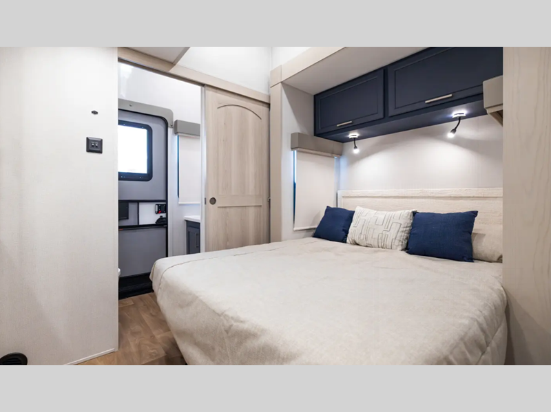 The 8' 5" wide-body provides more interior space to stretch out, and you'll be met with high-end kitchen amenities plus a larger bedroom and bath for a more residential feel. The mandatory Comfort Package includes upgraded residential style hardware, marine grade woven flooring in the slides, and many more luxuries. You'll appreciate the 6-point hydraulic leveling system and the upgraded suspension, along with a tire pressure monitor system and three A/C units, plus more features within the mandatory Voyager Package!