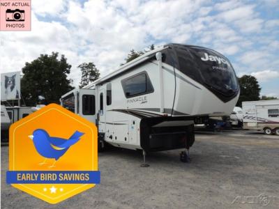 At Keystone RV Mega Center, your premier RV dealership in Greencastle, Pennsylvania, we proudly offer an exquisite range of Jayco Pinnacle fifth wheel travel trailers for sale. Known for their exceptional quality and comfort, Jayco Pinnacle fifth wheels are the epitome of luxury travel. Our handpicked selection features various models to suit every traveler's needs, whether you're embarking on a weekend getaway or a cross-country adventure. Each Jayco Pinnacle fifth wheel is designed with sophistication in mind, boasting spacious interiors, modern amenities, and all the comforts of home. Our knowledgeable staff is committed to guiding you through the selection process, ensuring that you find the perfect fifth wheel travel trailer to match your lifestyle and budget.