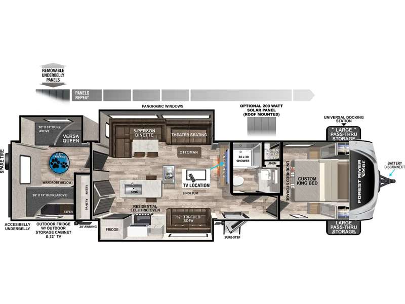 | Number Of Bunks | 2 | Available Beds | Custom King, Versa Queen |